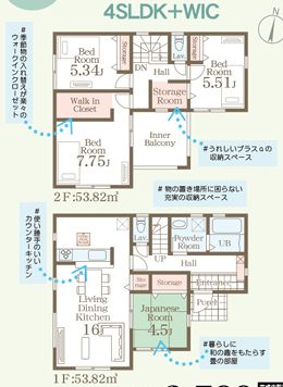 | 面積 | 土地 145.46㎡(44.30坪) 建物107.64㎡(32.56坪) |